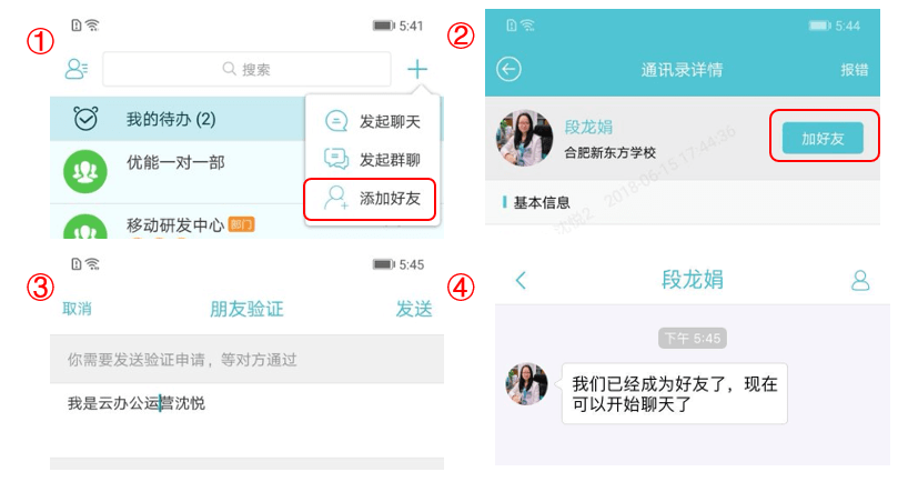 1、iLink添加好友的验证环节简化,沟通更便捷 点击添加好友,发送申请后即可开始交流,无需等待验证