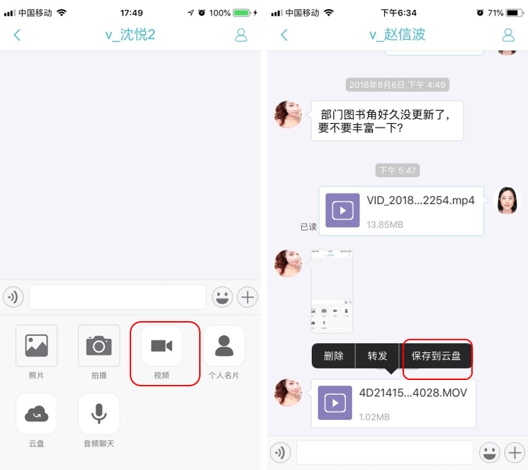 2、iLink沟通时增加发送视频文件功能 PS:视频文件也可一键保存至云盘