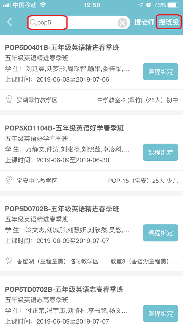 1、绑定班级时,支持按班级编码搜索