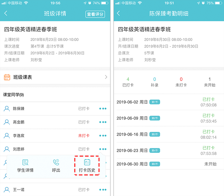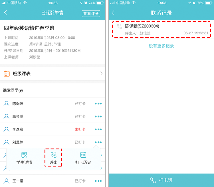 【新学管助手】查看呼叫记录、历史考勤记录新功能介绍20190627