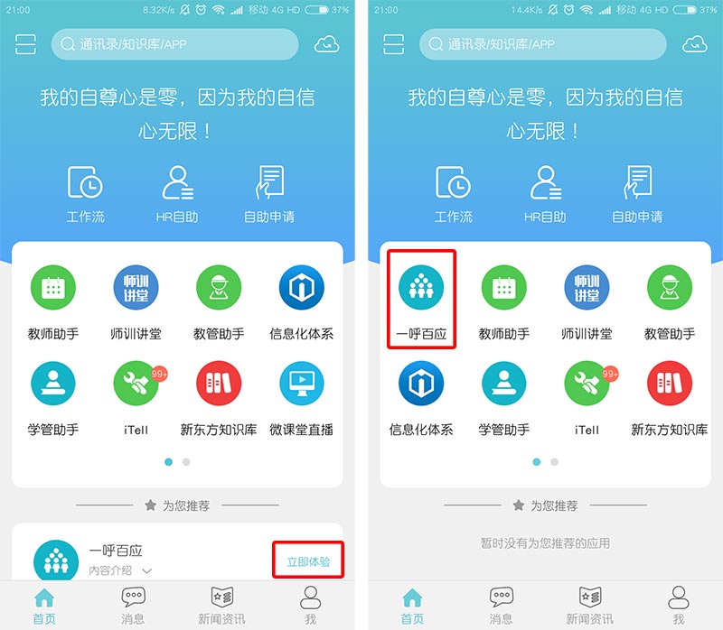 1、打开云办公,点击进入【一呼百应】,如果没有安装,可以在“为您推荐”中添加安装【一呼百应】;