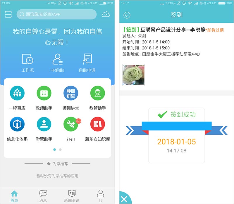 打开云办公,点击首页左上角的“扫一扫”按钮扫码二维码,然后选择“会议签到”后就会出现签到成功的提示;