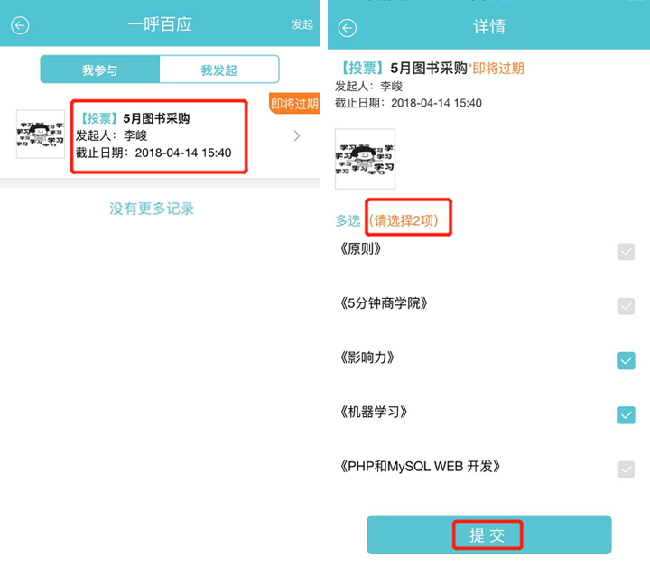 (1)发起人和参与人打开一呼百应,点击对应的活动,即可查阅最新投票情况。