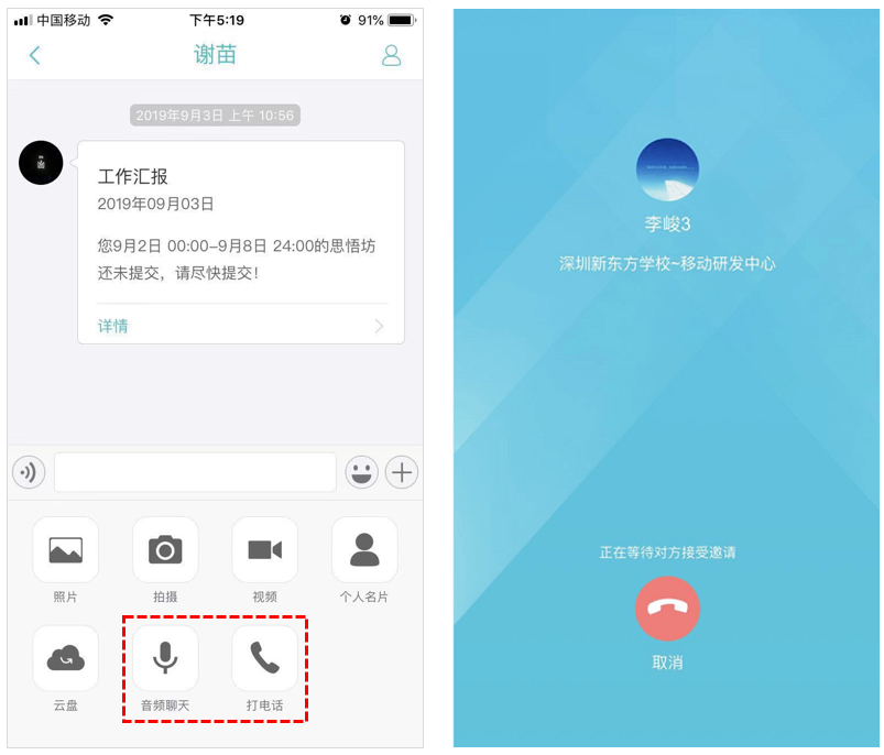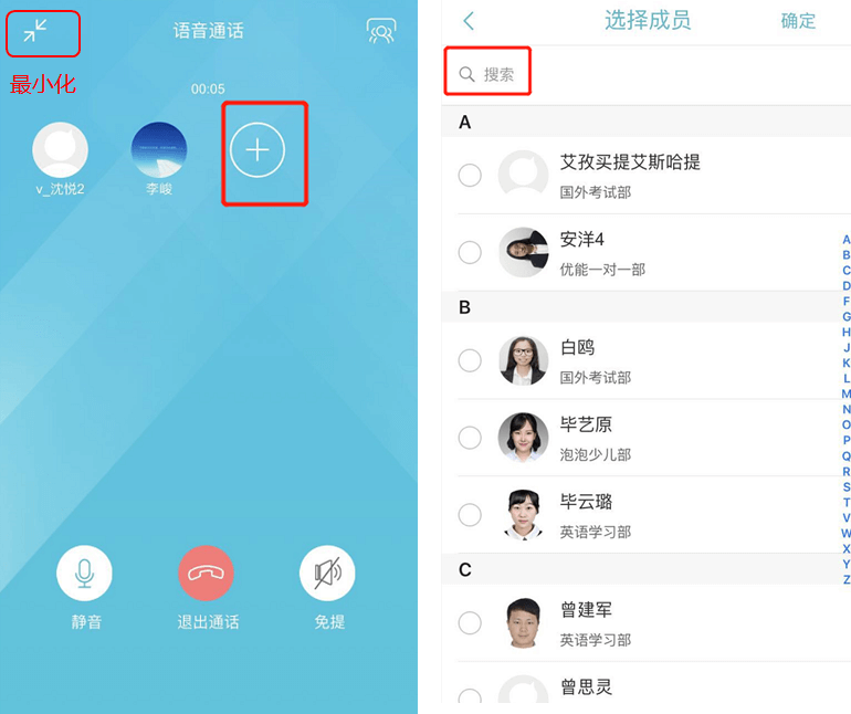 无须获得同事手机号码,即可发起免费多方语音通话,也可以直接拨打网络电话