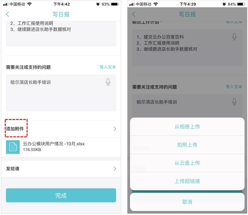 4、附件支持从云盘文件、照片及链接;