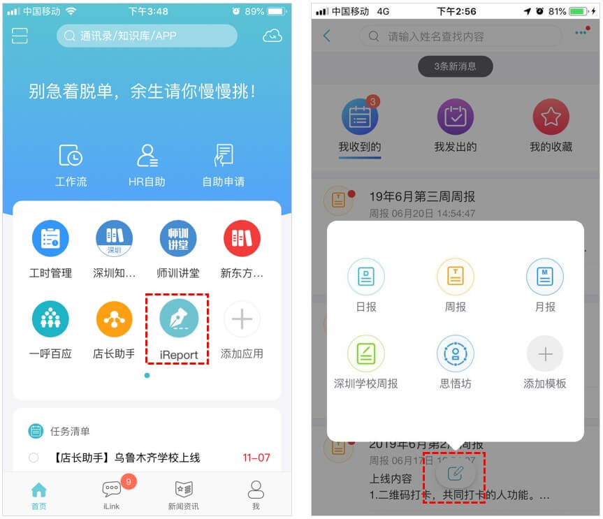 2、 登录后选择对应的图标进入iReport,操作方式基本与手机端一致。