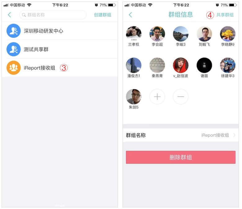 私人群组需要分享时,通过【iLink】-左上角图标-工作群组-选择需要转发的群组-点击“共享群组”-选择接收人,这样对方就可以快速拥有这个群组,不需要每个人都新建了。