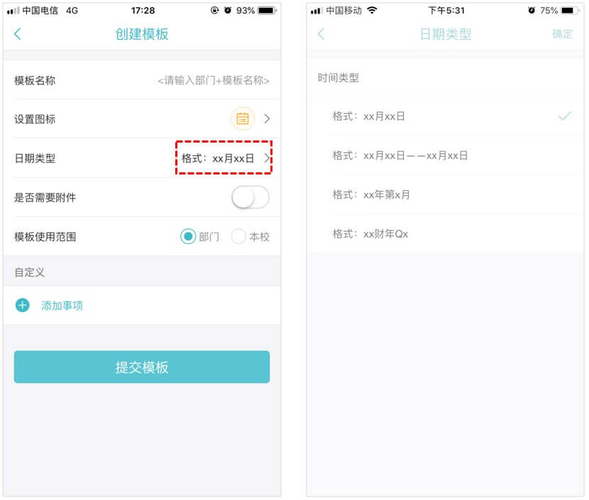 2、根据汇报周期可以选择不同的时间类型;
