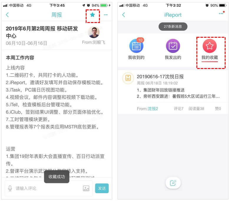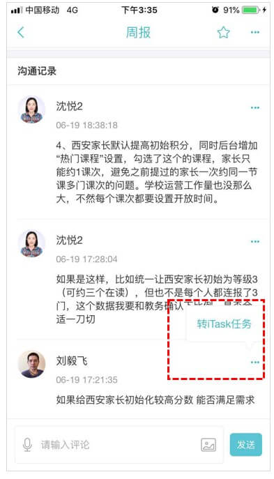 4、 可以针对汇报内容进行沟通,重要内容可转为iTask任务进行跟进;