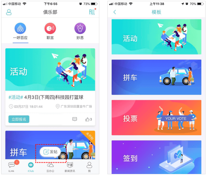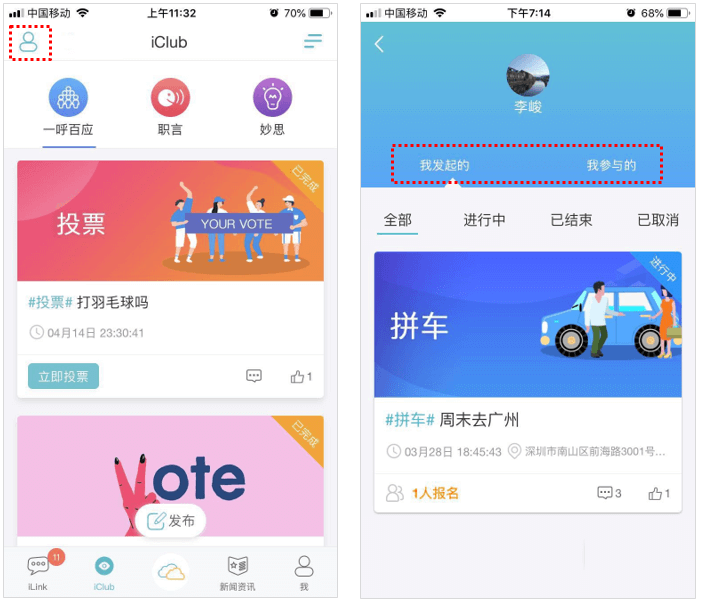 【iClub - 一呼百应】,全新升级,在签到、投票基础上,增加活动和拼车功能,