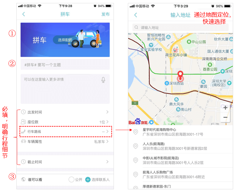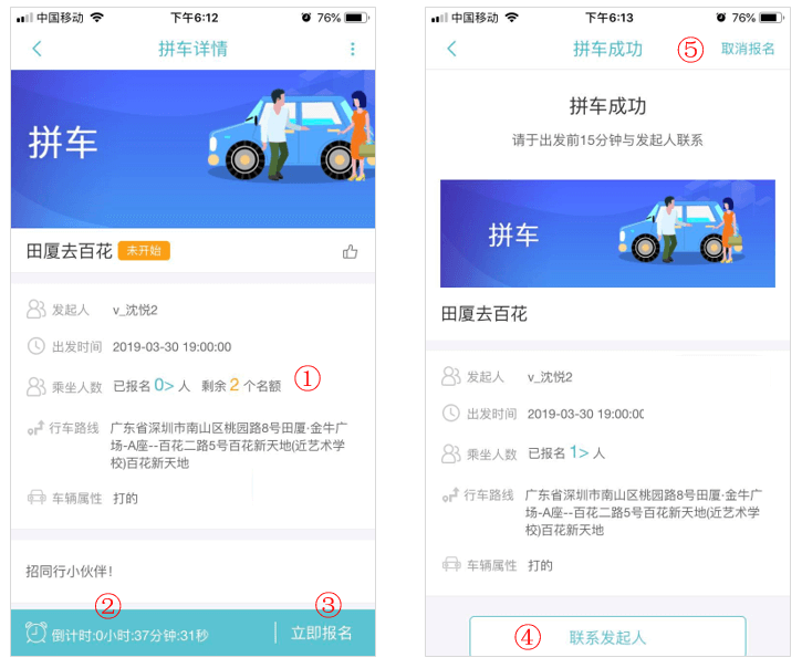 ⑤如不乘车了,请及时取消,发起人将会收到通知;