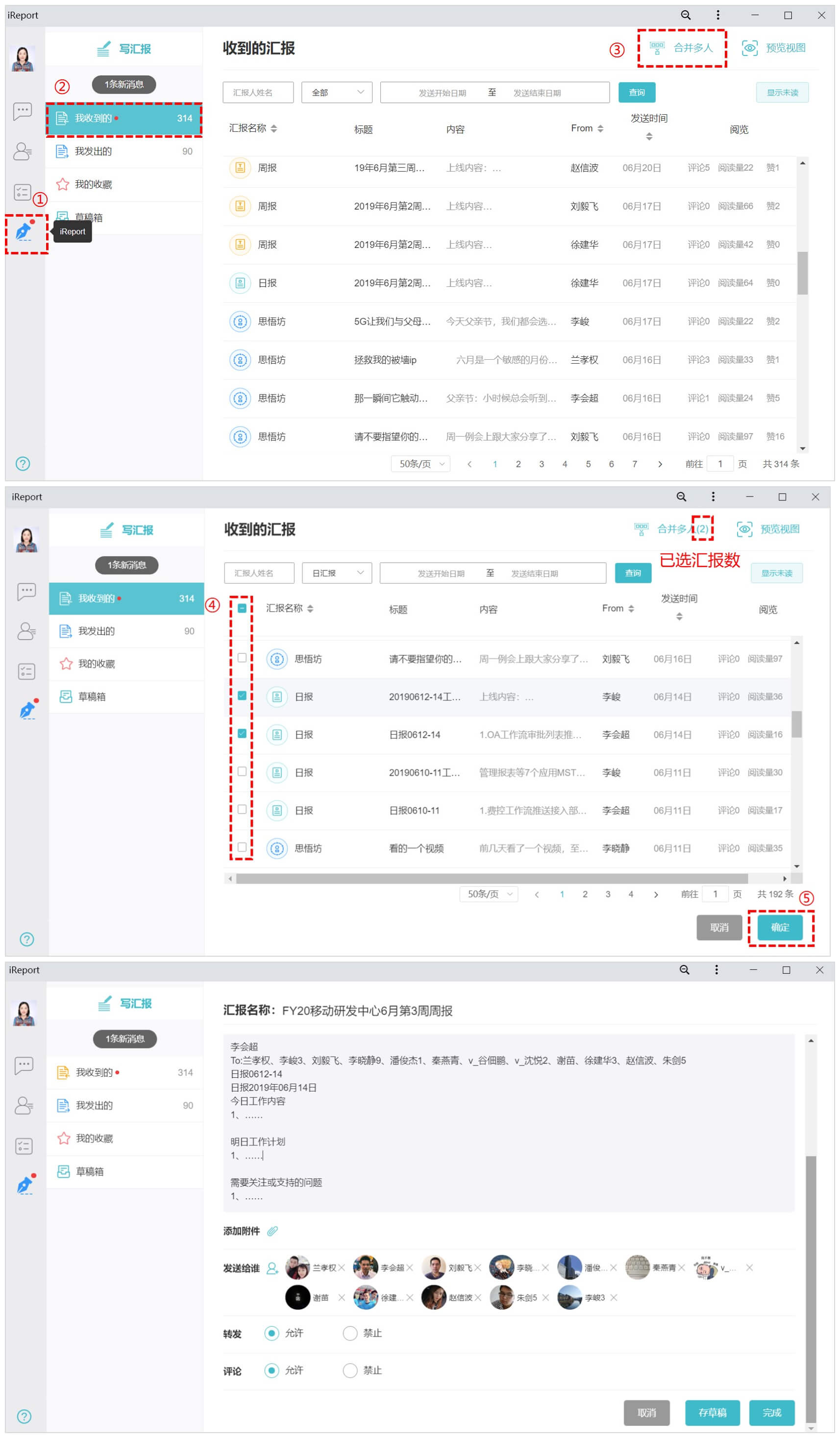 可用场景:汇总部门多人周报时,不用手动复制每篇汇报内容,直接生成合并版本并发送,发送后可再次编辑。有以下两种方式——