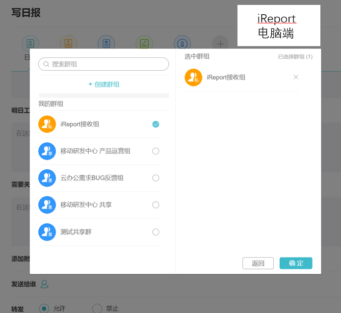 工作群组:建立常用工作群组,可以在多个应用中,一键添加人员,如iReport接收人、一呼百应接收人、iTask抄送人等,不用每次重复选人动作。