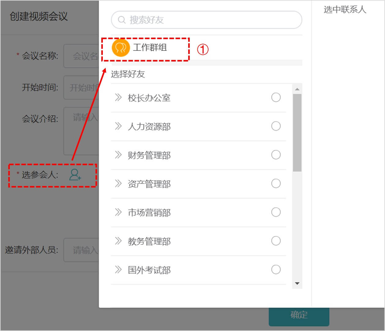 负责组织【视频会议】的老师,常常会遇到每次参会人都不同,要挨个勾选几十位参会人的情况。